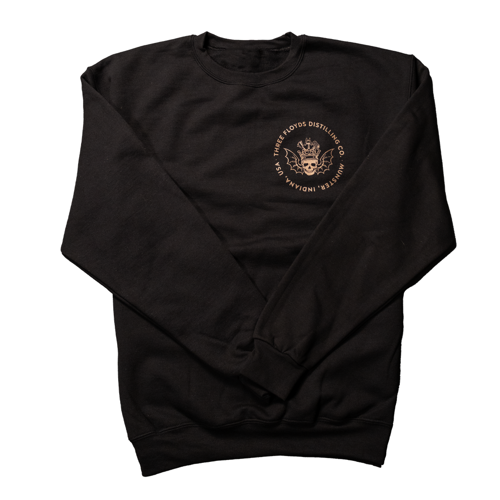 Black crewneck with Three Floyds Distilling logo on the front