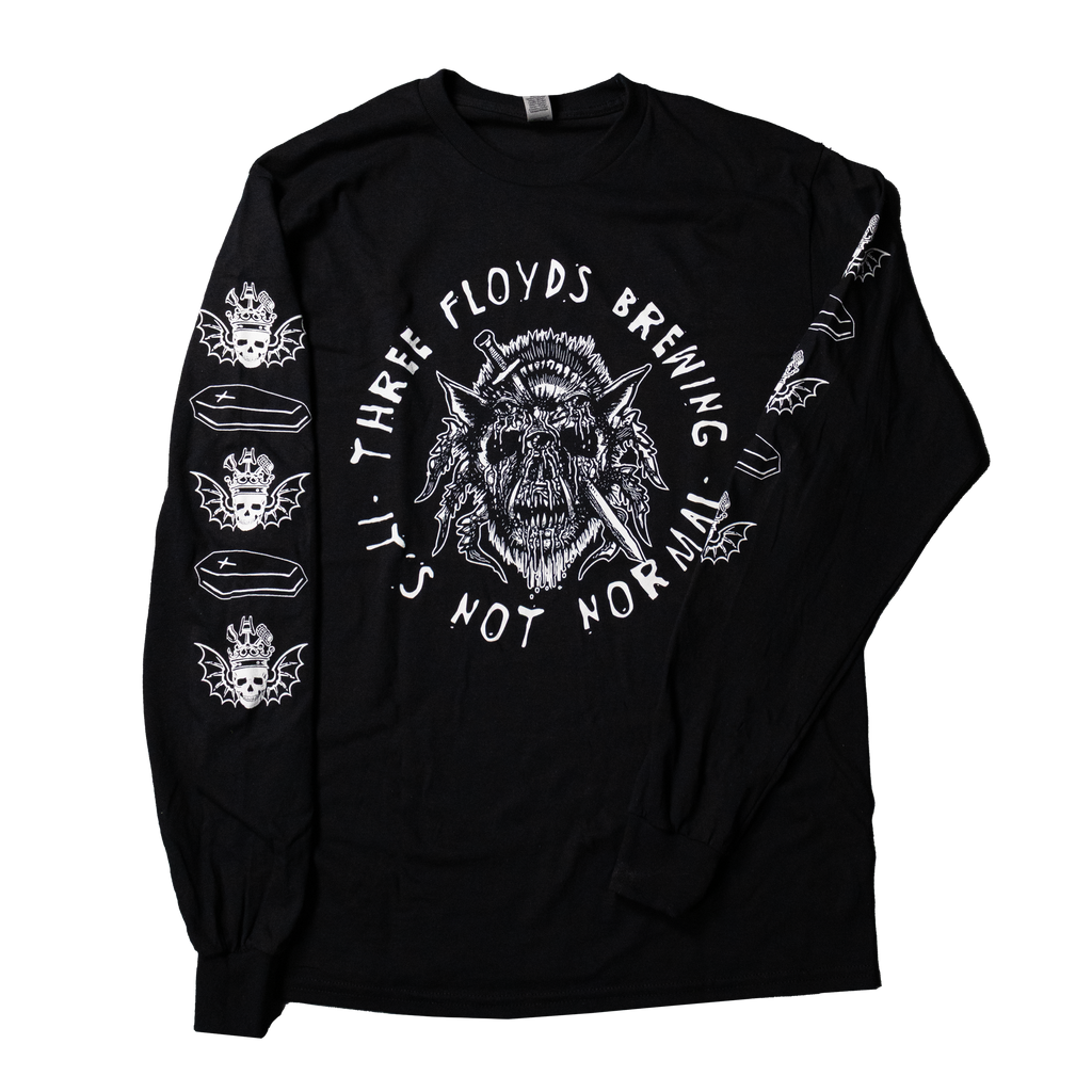 Black long-sleeve shirt with Permanent Funeral logo on the front and down the sleeves