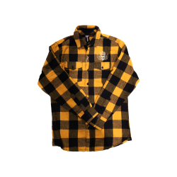 Tobacco and black flannel with an embroidered gold Three Floyds logo.